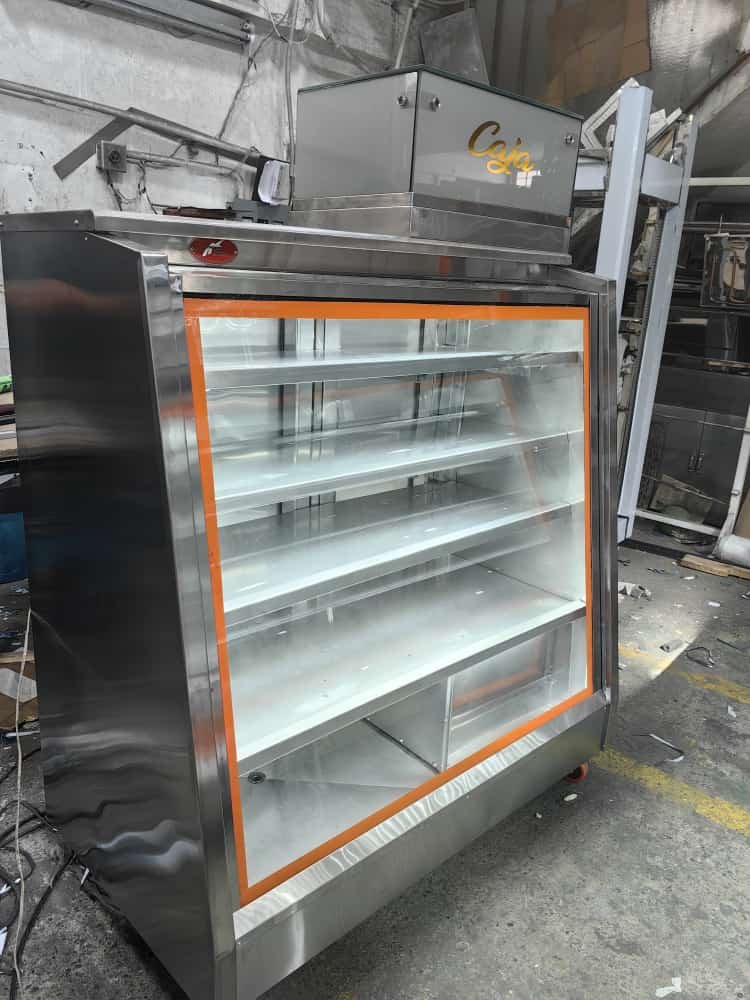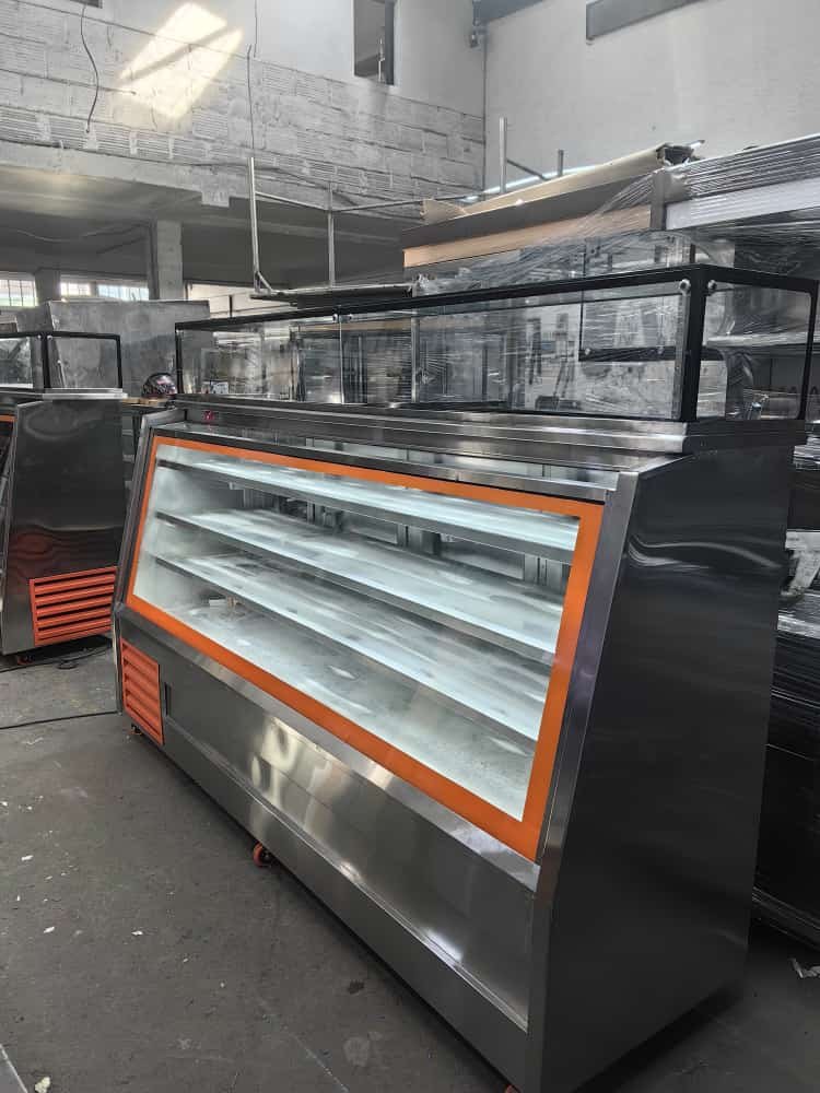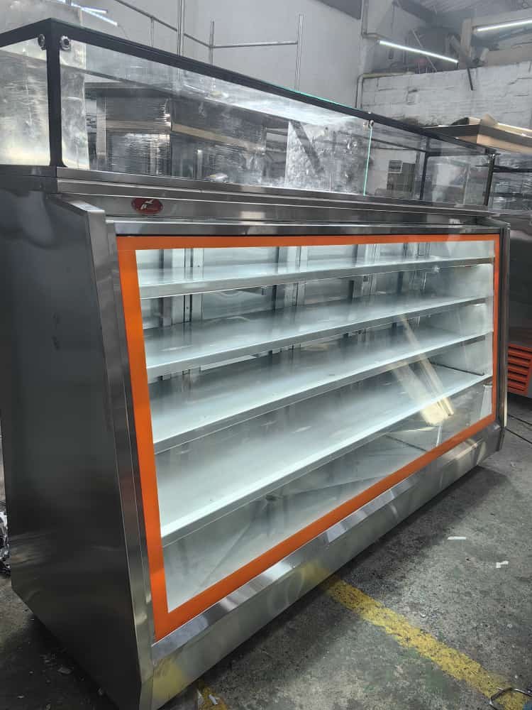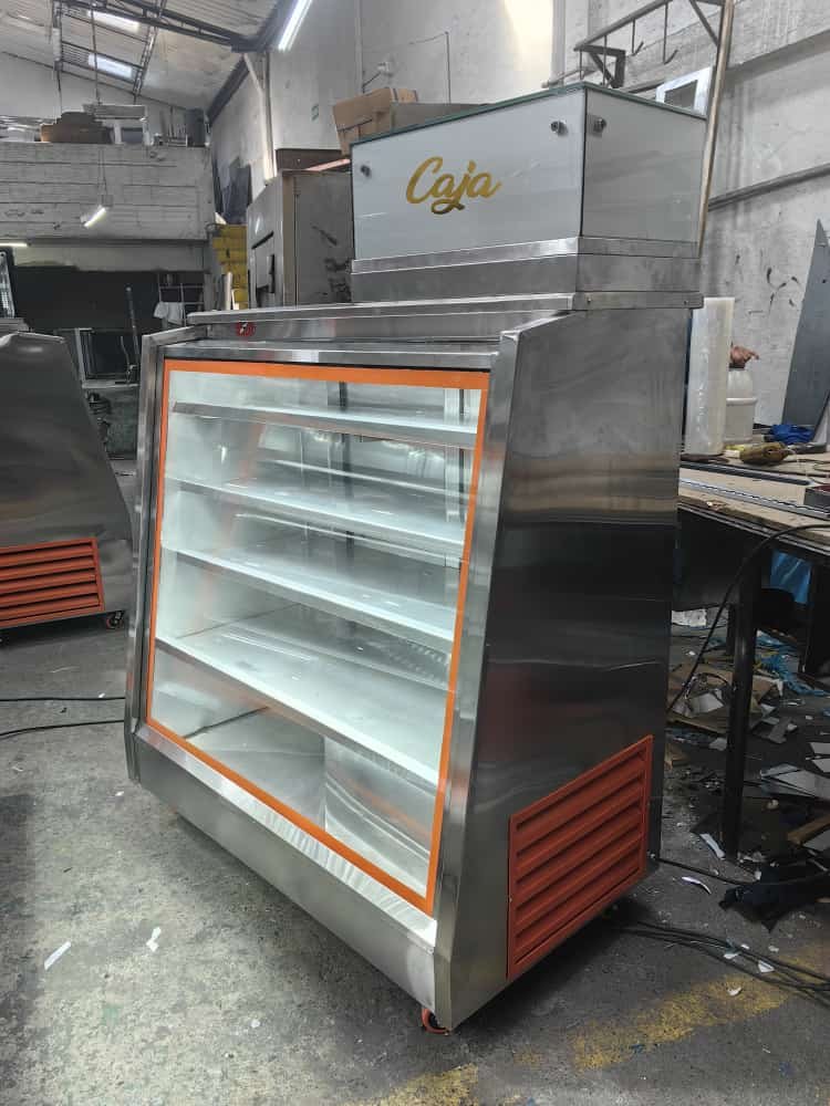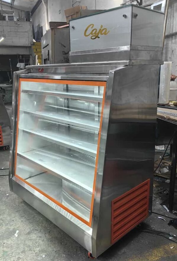 VITRINA REFRIGERADA EN ESCUADRA, FRENTE Y TAPA EN MARMOL